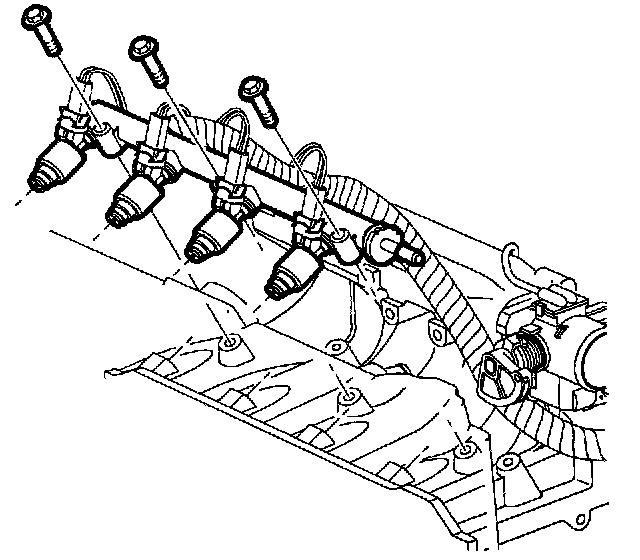 IMPORTANT: Enough space exists between the intake manifold and cam cover to remove the fuel rail as an assembly.