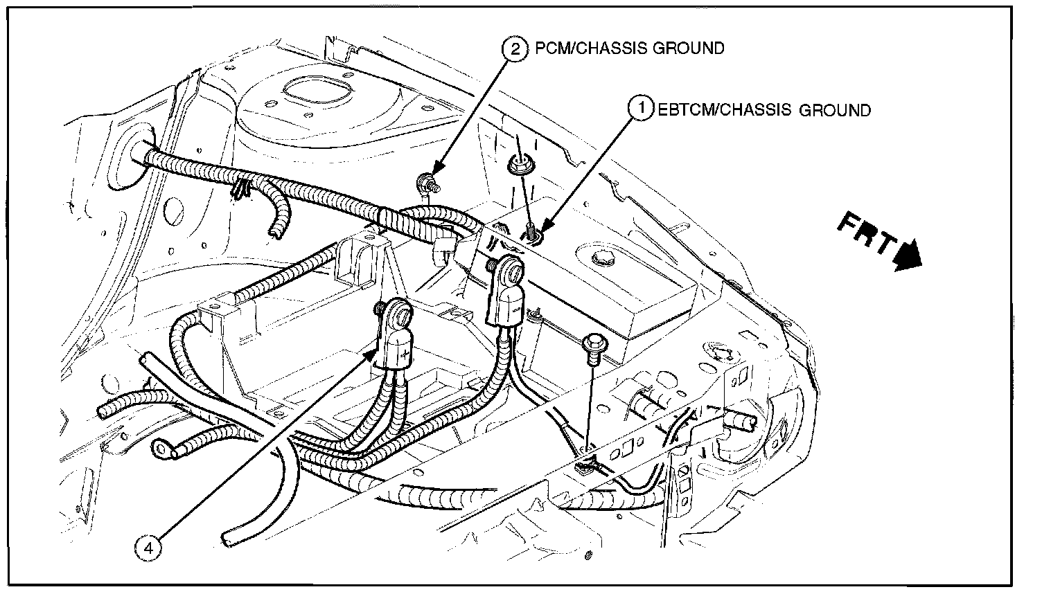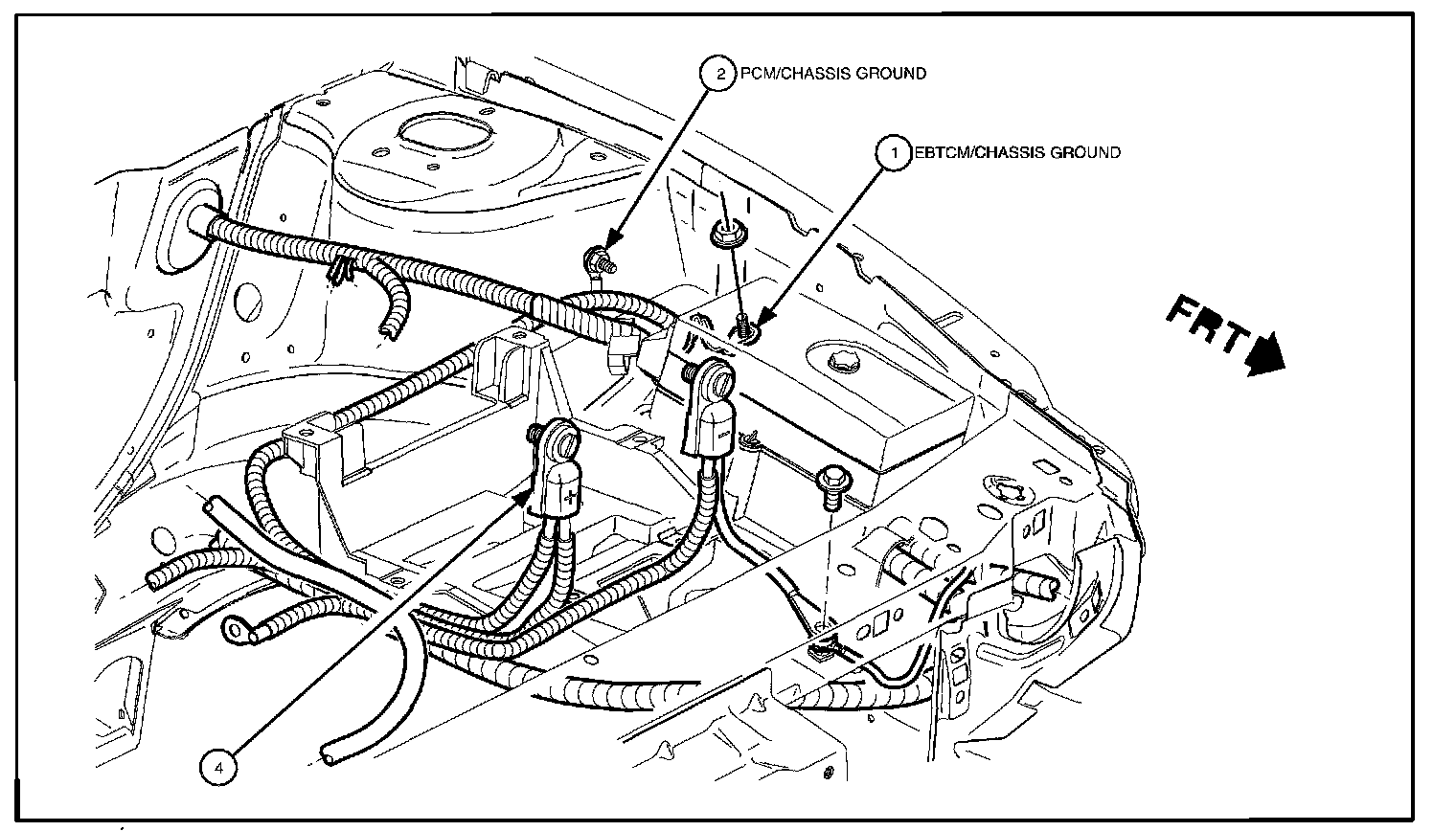 11. Install new fastener P/N 21006316 to PCM/Chassis ground stud.