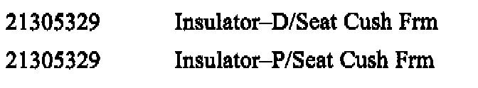 Use the following procedure to install seat frame insulator (P/N 21305329) over seat back frame.