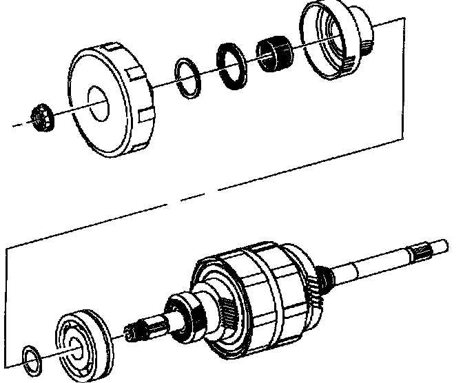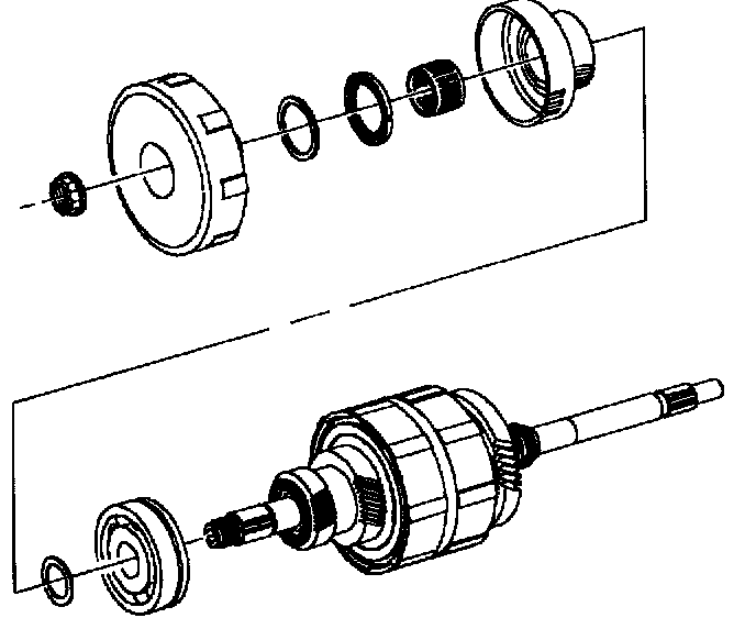 10. Remove input shaft clamp nut, 1st clutch assembly. Thrust washer and input shaft ball bearing.