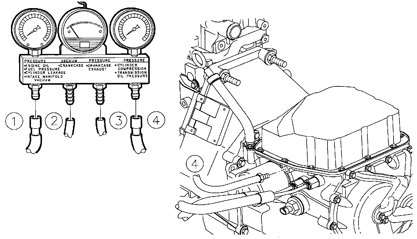 1. Oil pressure maximum and minimum values at idle should be checked using the following procedure: