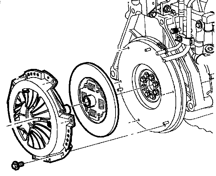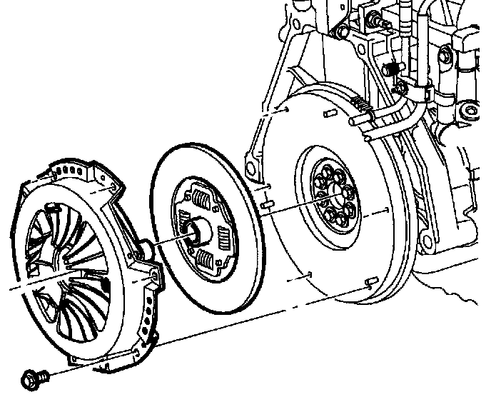6. Remove clutch housing cover assembly (pressure plate) to flywheel bolts.
