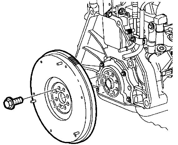 16. Remove flywheel-to-crankshaft bolts and remove flywheel.