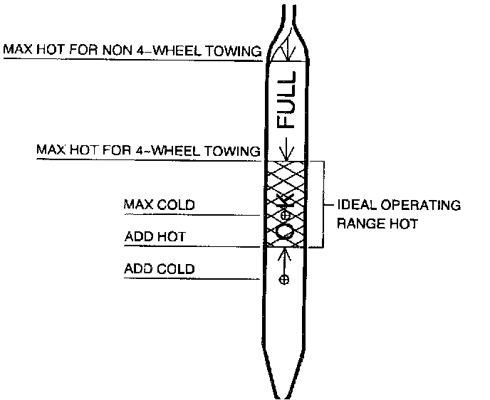 IMPORTANT: The "Add Cold" and "Max Cold" marks on the oil level indicator are for reference only. To determine the proper transaxle fluid level, it must be checked according to the procedures above.