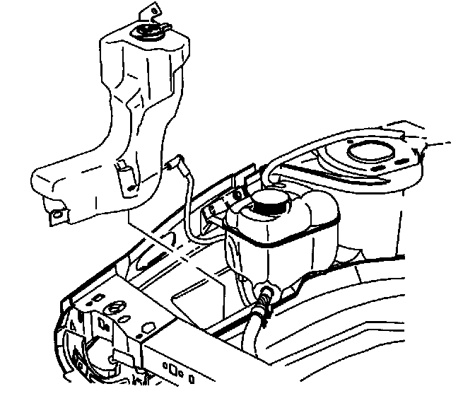 NOTE: Use caution when removing hoses from washer system components to avoid spilling washer fluid on painted surfaces.