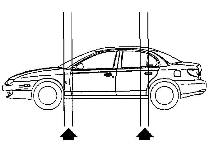 CAUTION: MAKE SURE VEHICLE IS PROPERLY SUPPORTED AND SQUARELY POSITIONED. TO HELP AVOID PERSONAL INJURY WHEN A VEHICLE IS ON A HOIST PROVIDE ADDITIONAL SUPPORT FOR THE VEHICLE ON THE OPPOSITE END FROM WHICH COMPONENTS ARE BEING REMOVED. MAKE SURE HOIST DOES NOT CONTACT FUEL OR BRAKE LINES.