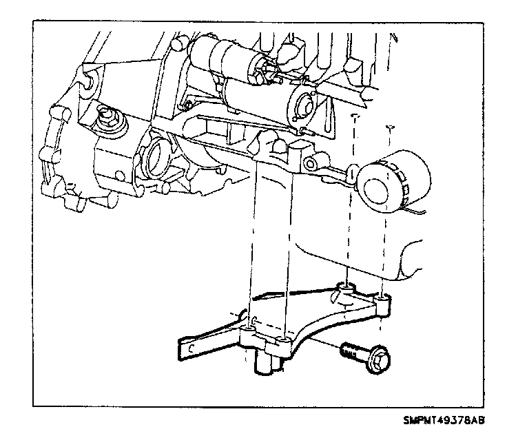 8. Remove engine stiffening bracket and transaxle inspection cover.