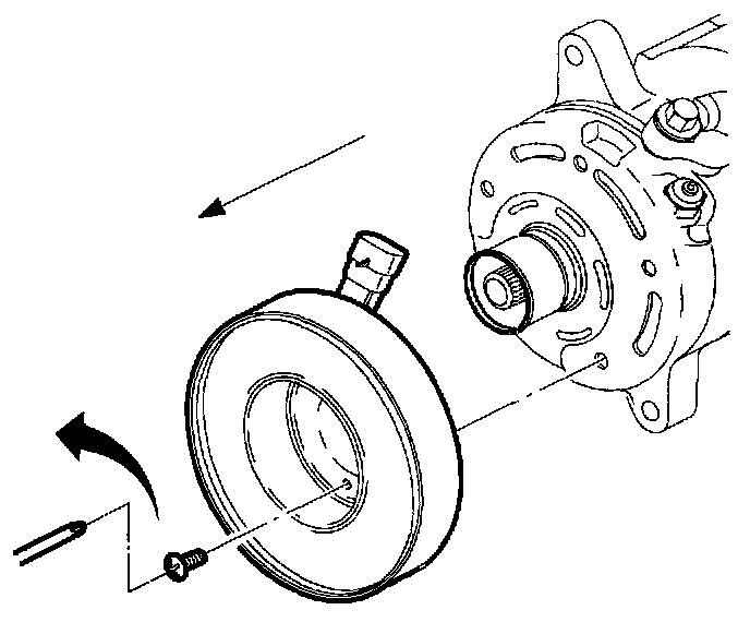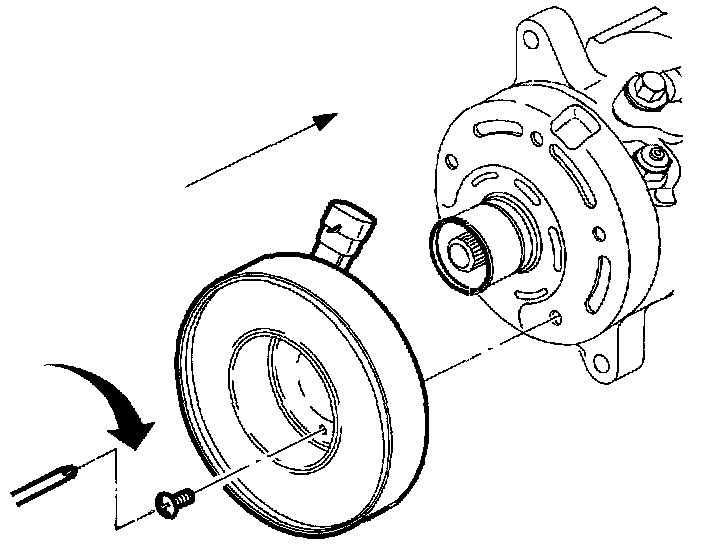 18. Remove three A/C compressor clutch coil screws and remove A/C compressor clutch coil.