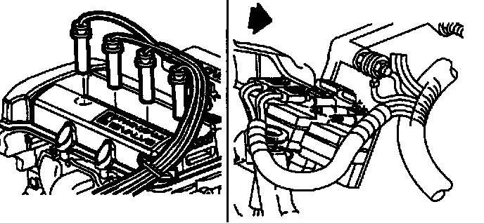 2. Shut engine off and disconnect the ignition module wiring harness plug.