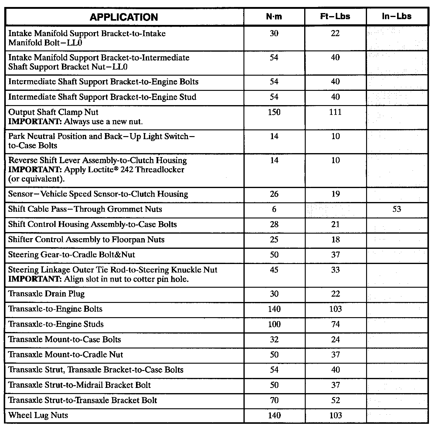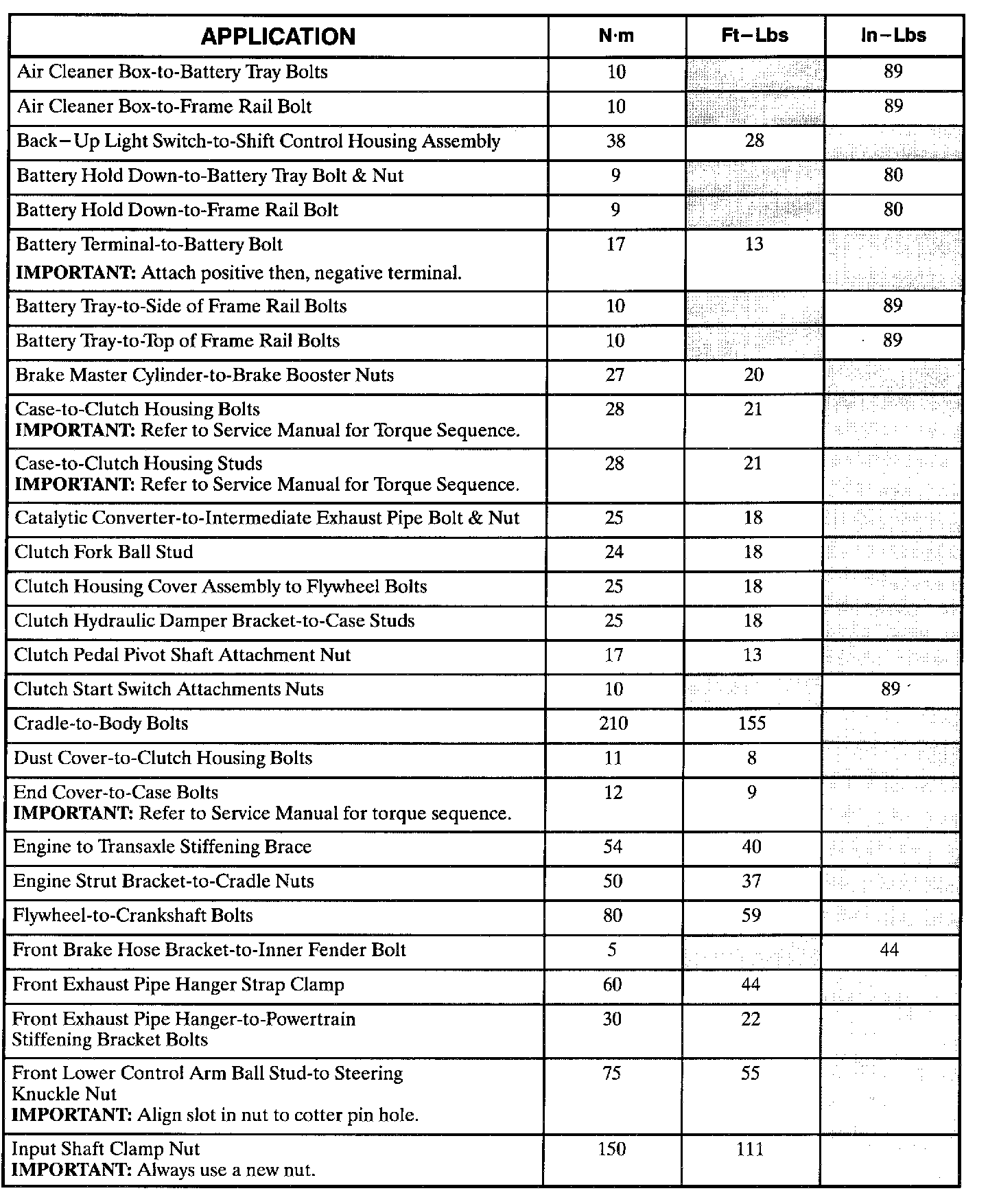 Torque Specifications