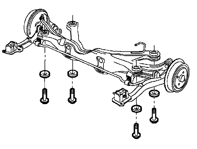 8. Remove the four rear suspension support to body bolts and discard bolts.