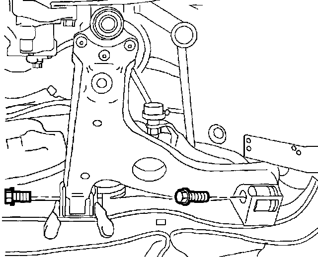 3. Remove control arm-to-frame assembly bolts and discard bolts.