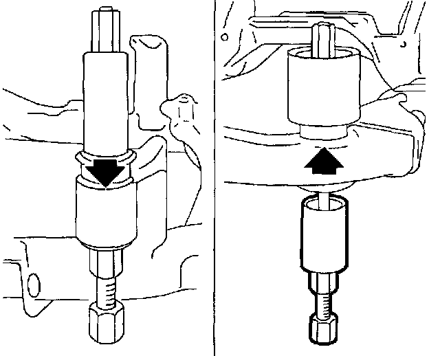 5. Using tools Bushing Remover/Installer KM-671, Bushing Remover/Installer KM-907 KM-907-11, KM-907-12 and KM-907-30, press out all damping bushings.