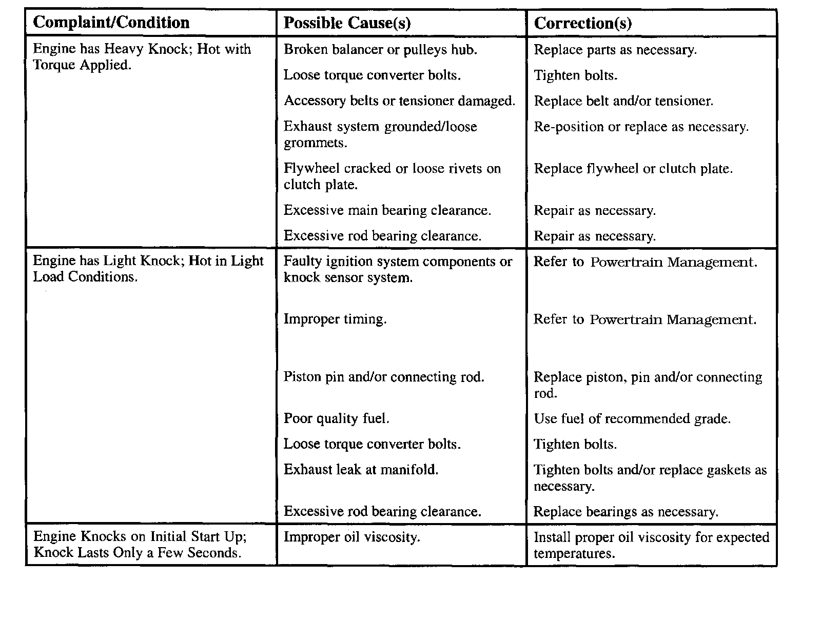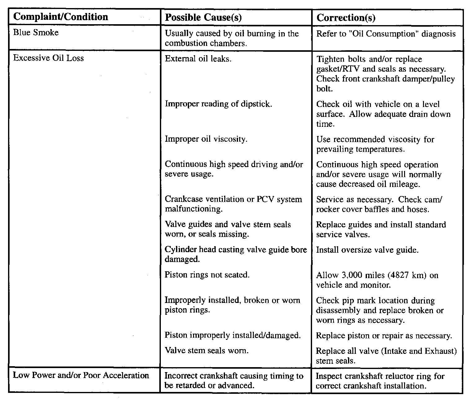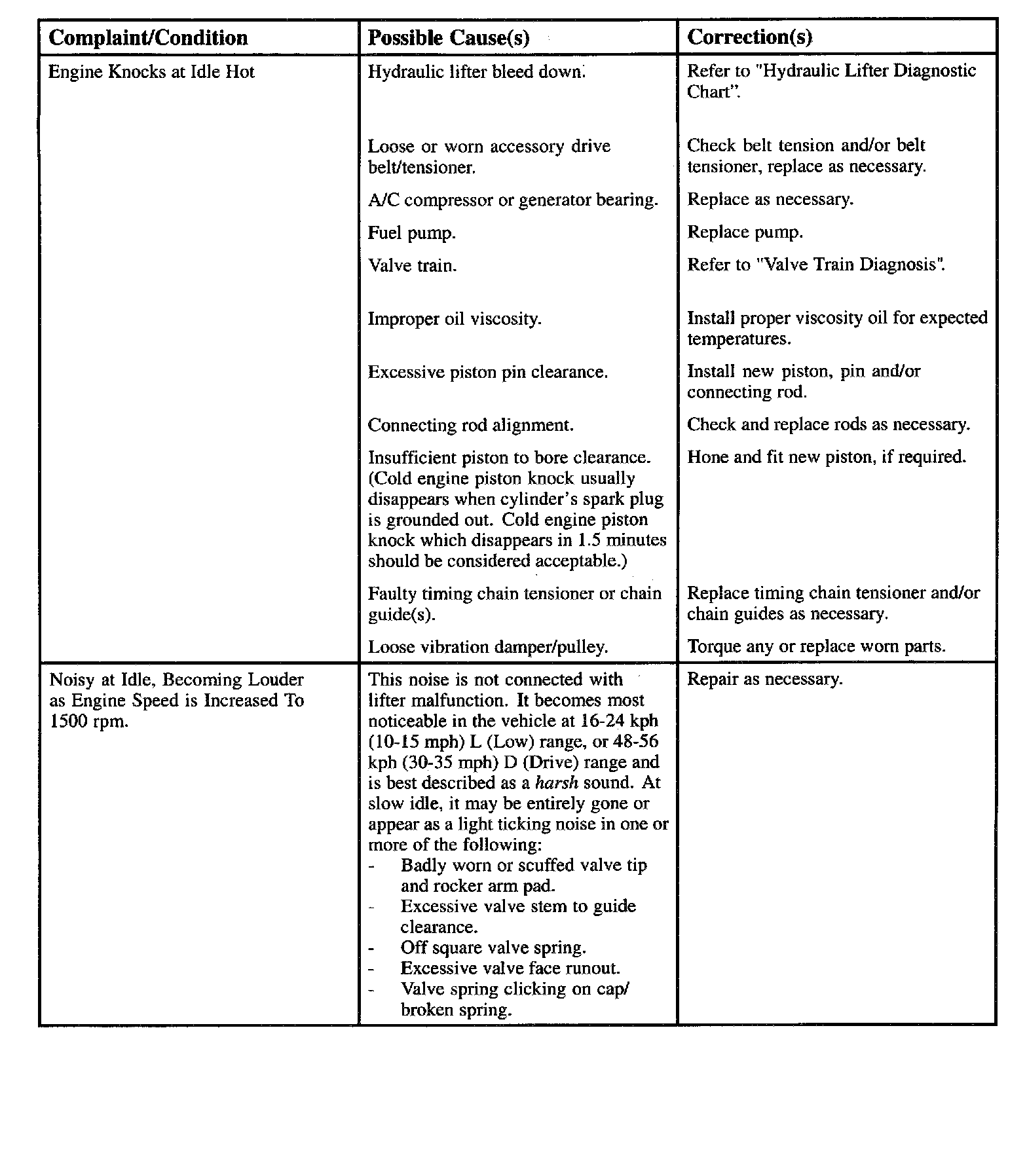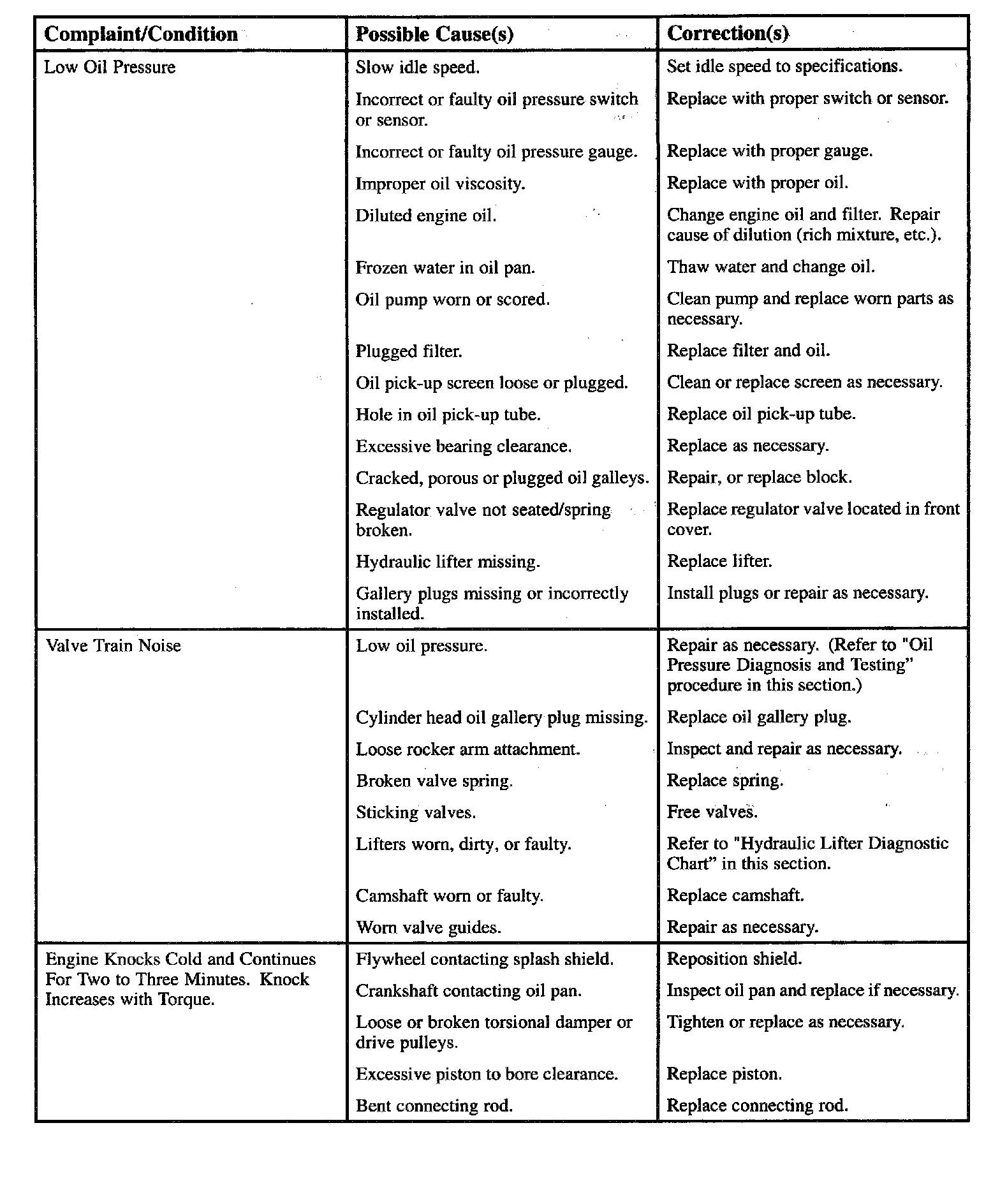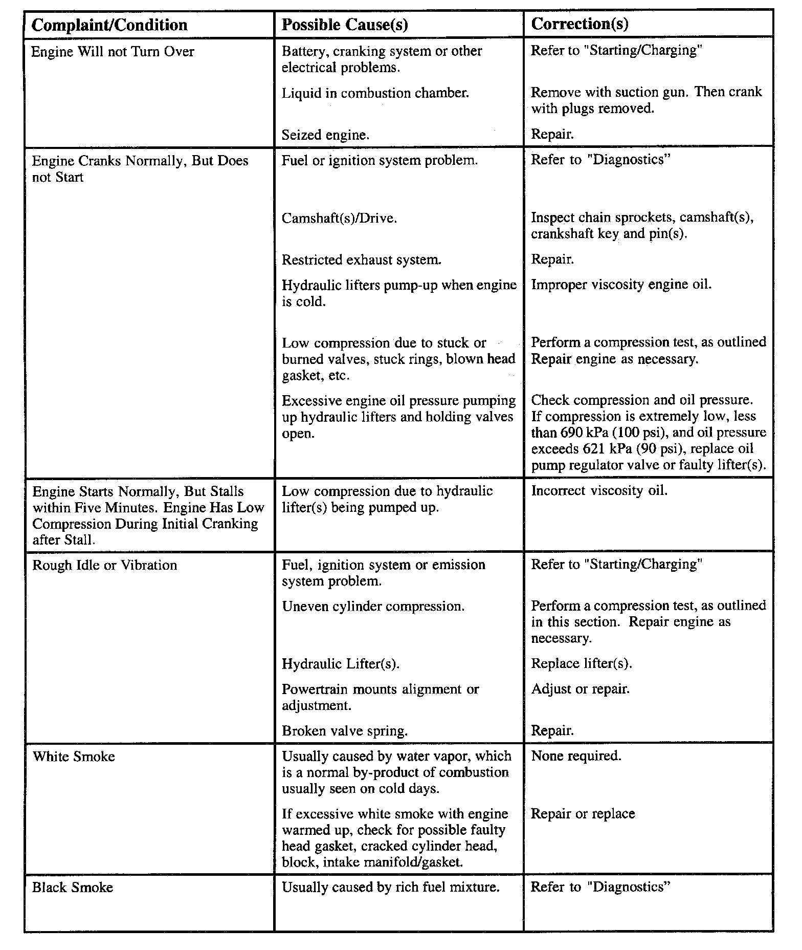 Engine Diagnostic Chart