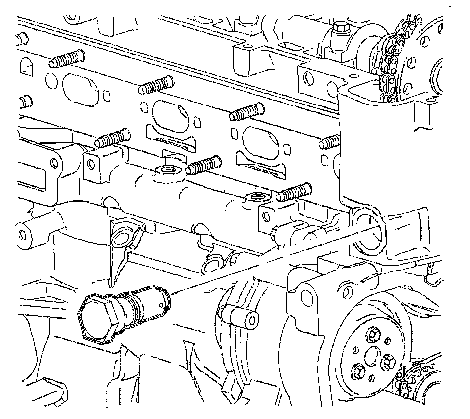 20. Install the timing chain oil nozzle and bolt. Tighten the timing chain oil nozzle bolt to 10 Nm (89 lb in).