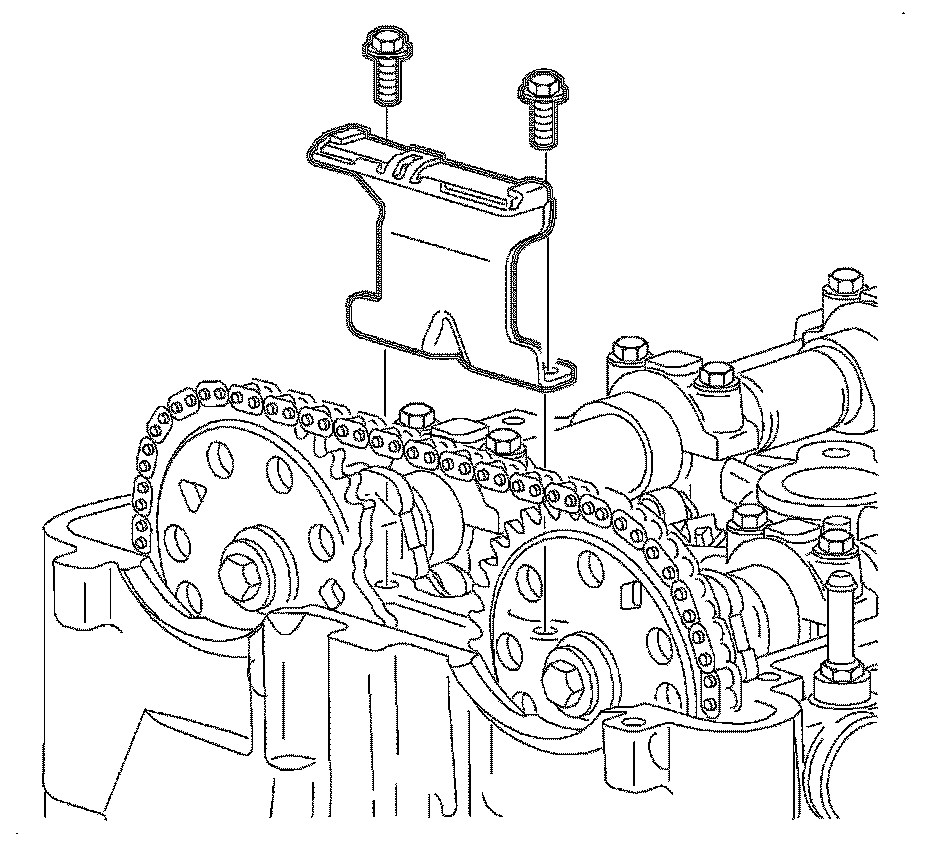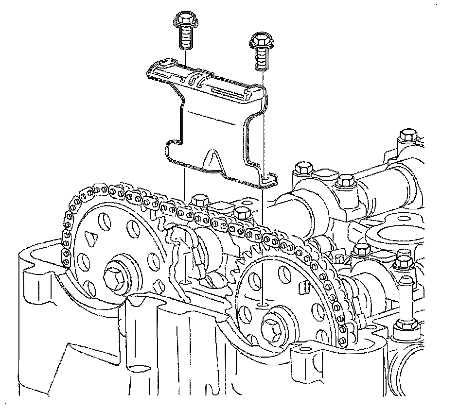 17. Install the upper timing chain guide and bolts. Tighten the timing chain guide (upper) bolts to 10 Nm (89 lb in).