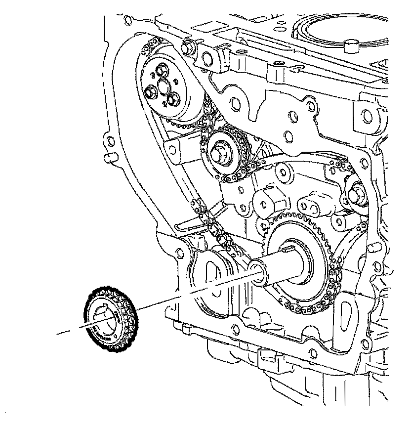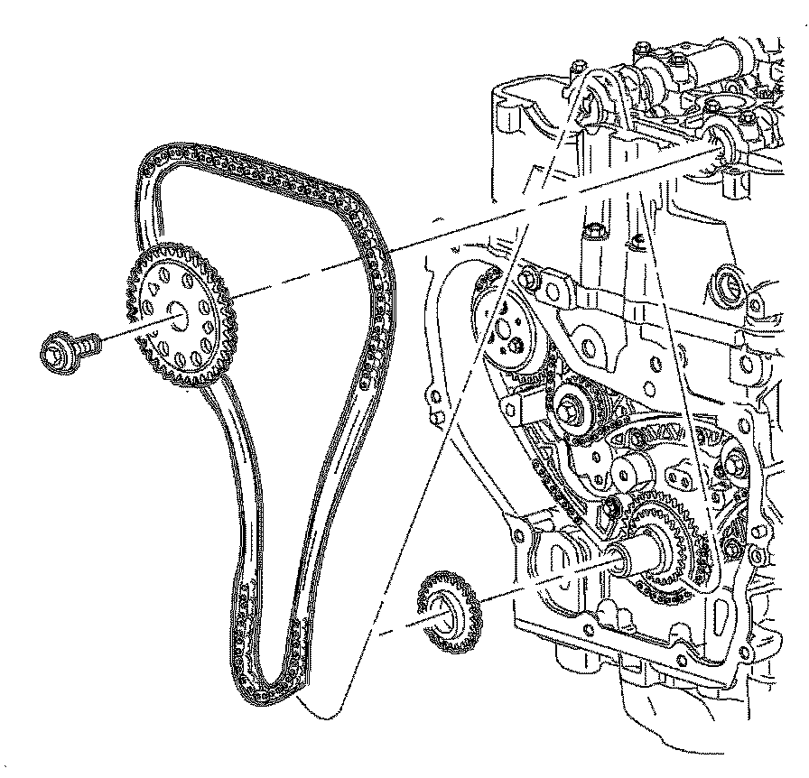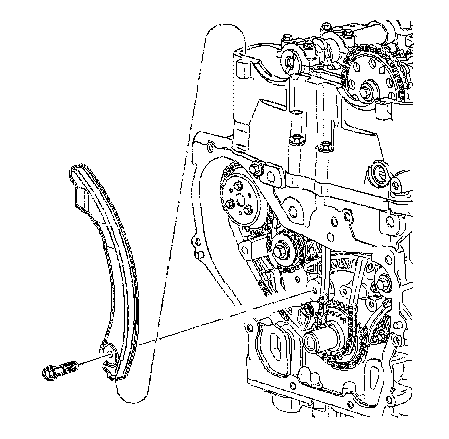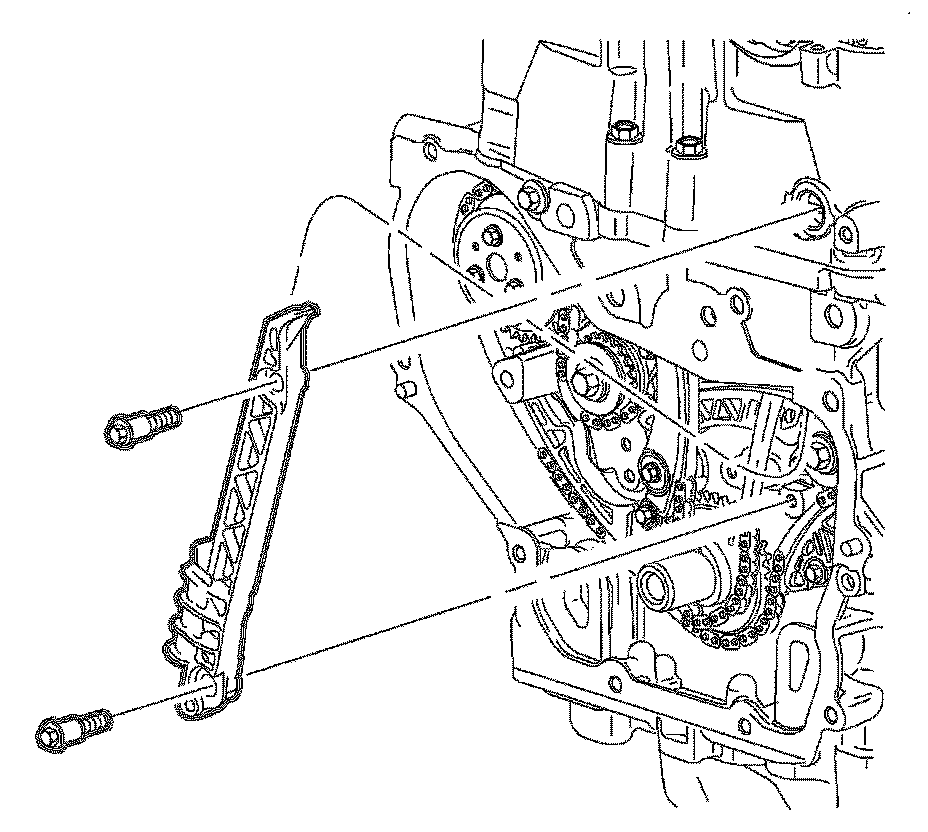 Important: The timing chain tensioner must be removed to unload chain tension before the timing chain is removed. If it is not removed, the timing chain may become cocked and difficult to remove.