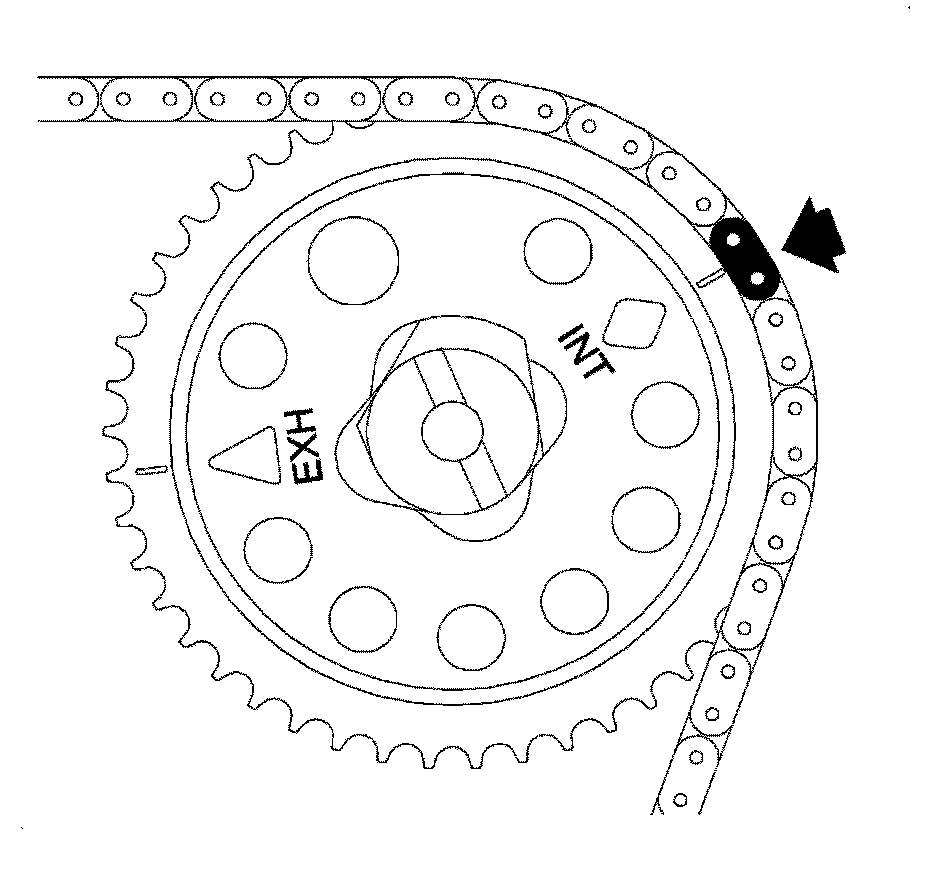 3. Assemble the chain to the intake camshaft sprocket alignment copper link to the INT diamond timing mark on the camshaft sprocket.