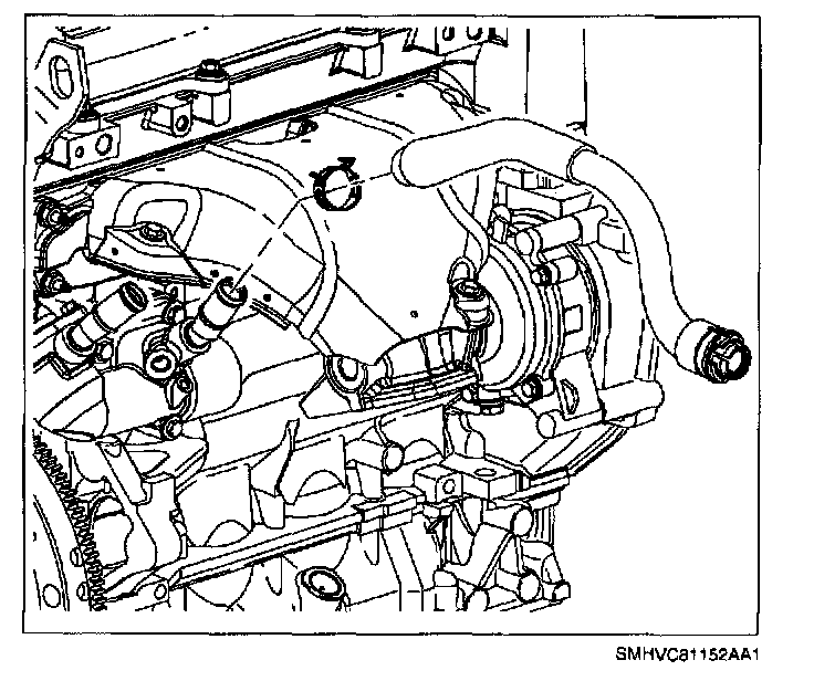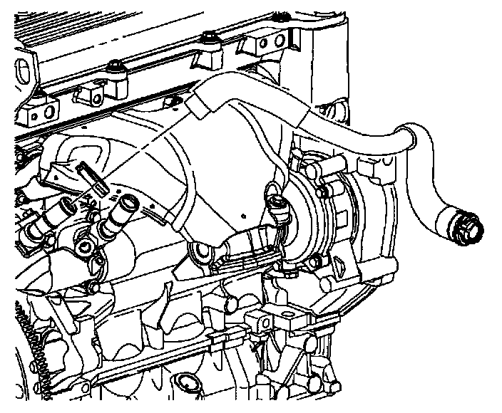 8. Install heater return hose to thermostat inlet.