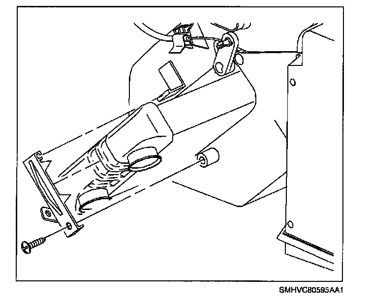2. Install heater core retaining strap and screw.