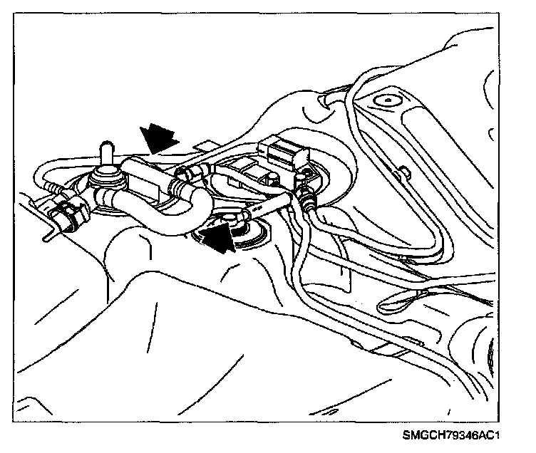 Fill Limit Vent Valve (FLVV) - Located on the top, front surface of the fuel tank, next to the fuel pump module. This is a buoyant float type valve which controls the flow of fuel vapor into the EVAP canister during refueling. The operation of the valve controls fuel tank capacity during the refueling process (refer to "Theory of Operation-ORVR"). The valve also prevents liquid fuel from escaping if the vehicle is involved in a roll-over accident.