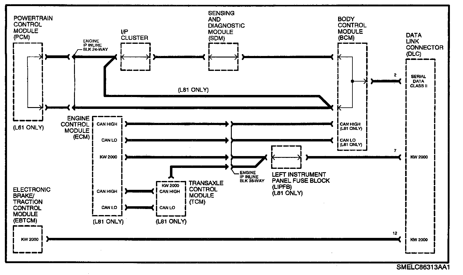 On the V6 (L81) application, the Scan tool communicates over a KW 2000 data link.