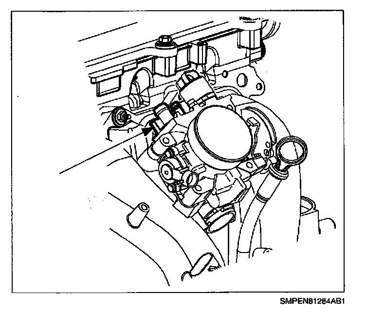 3. Remove throttle cable bracket attachment nuts. Pick throttle cable bracket up and move it to the side to allow enough clearance to remove the MAP sensor.