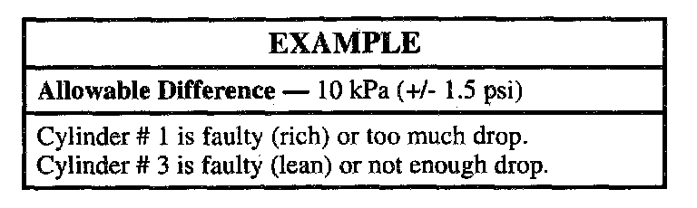 10. An injector is faulty if the Difference is greater than 10 kPa (±1.5 psi).