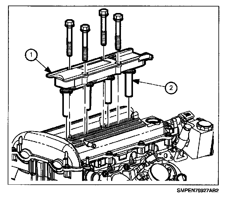 2. Install ignition coil housing to cam cover and attachment bolts.