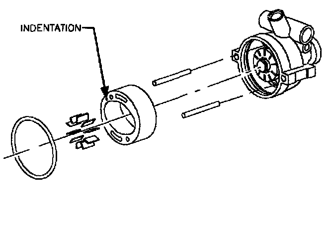 IMPORTANT: The pump ring face has an indentation on one side near dowel hole. The ring must be installed with indentation facing up. If the ring is installed upside down, the pump will not function.