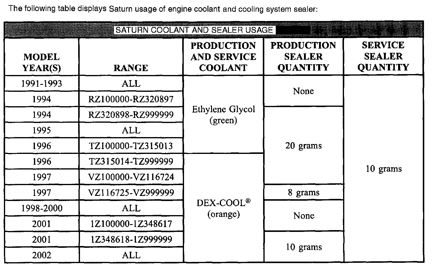 The purpose of this bulletin is to provide revised recommendations concerning the use of Engine Cooling System Sealer in Saturn vehicles Containing DEX-COOL(R).