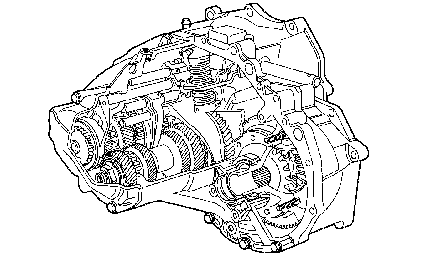TRANSAXLE DESCRIPTIONThe five speed manual transaxle assembly consists of a differential assembly and a constant mesh design transaxle in a single case. All forward gears are in constant mesh. Synchronizers with blocking rings, controlled by shift forks, are used for ease of shifting and selection of desired gear range.