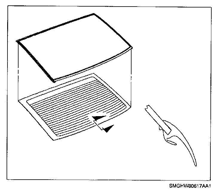 7. With aid of a helper, lift glass into window opening. Align top edge of molding with notches in roof panel. Make certain the lip of the applied molding laps over the roof feature line.