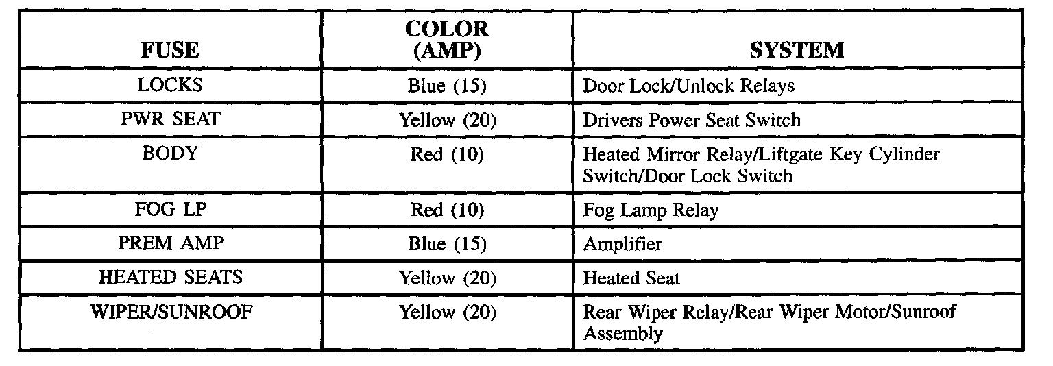 Instrument Panel Fuse Block Charts