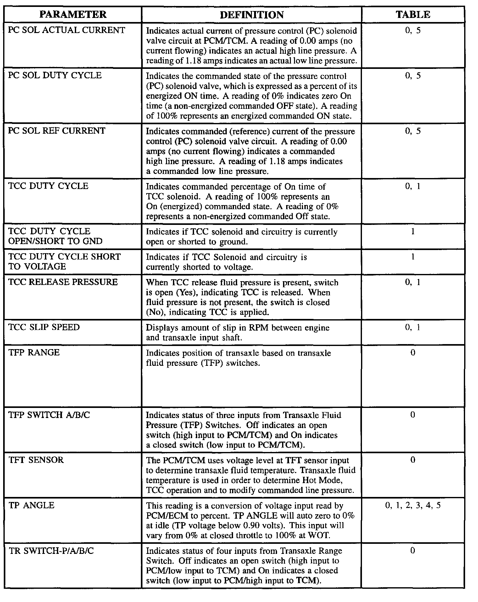 SCAN TOOL DATA DEFINITIONS FOR TRANSMISSION DATA