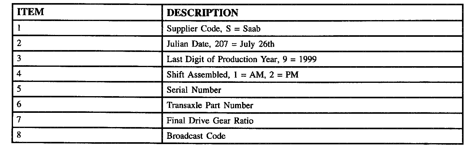 Transaxle Identification Information