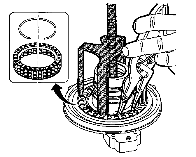 4. Compress 2nd clutch spring assembly. Use Clutch Spring Compressor Adapter J41232 and Clutch Spring Compressor J23327.