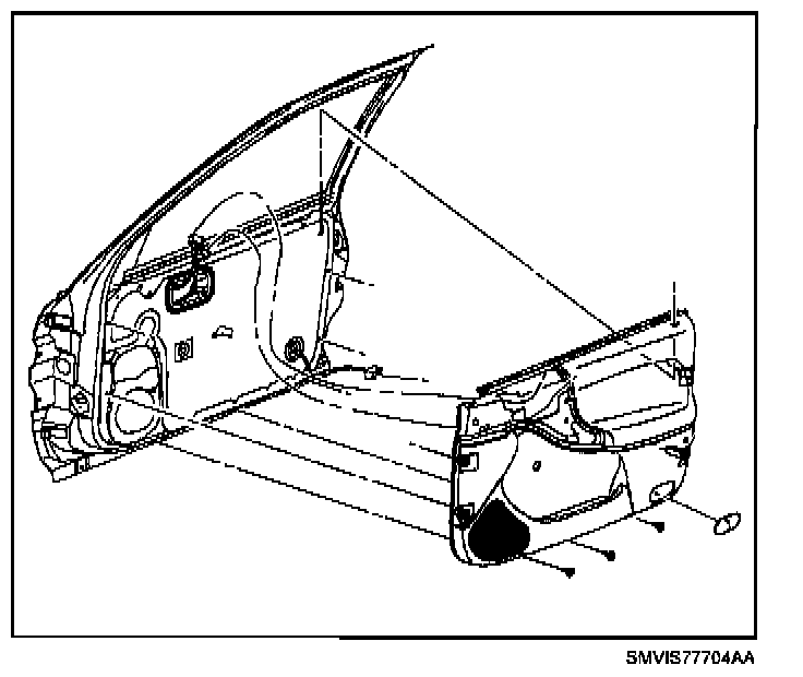 29. On vehicles equipped with illuminated front door trim panels, hold door trim panel away from door structure enough to connect wiring harness connector.