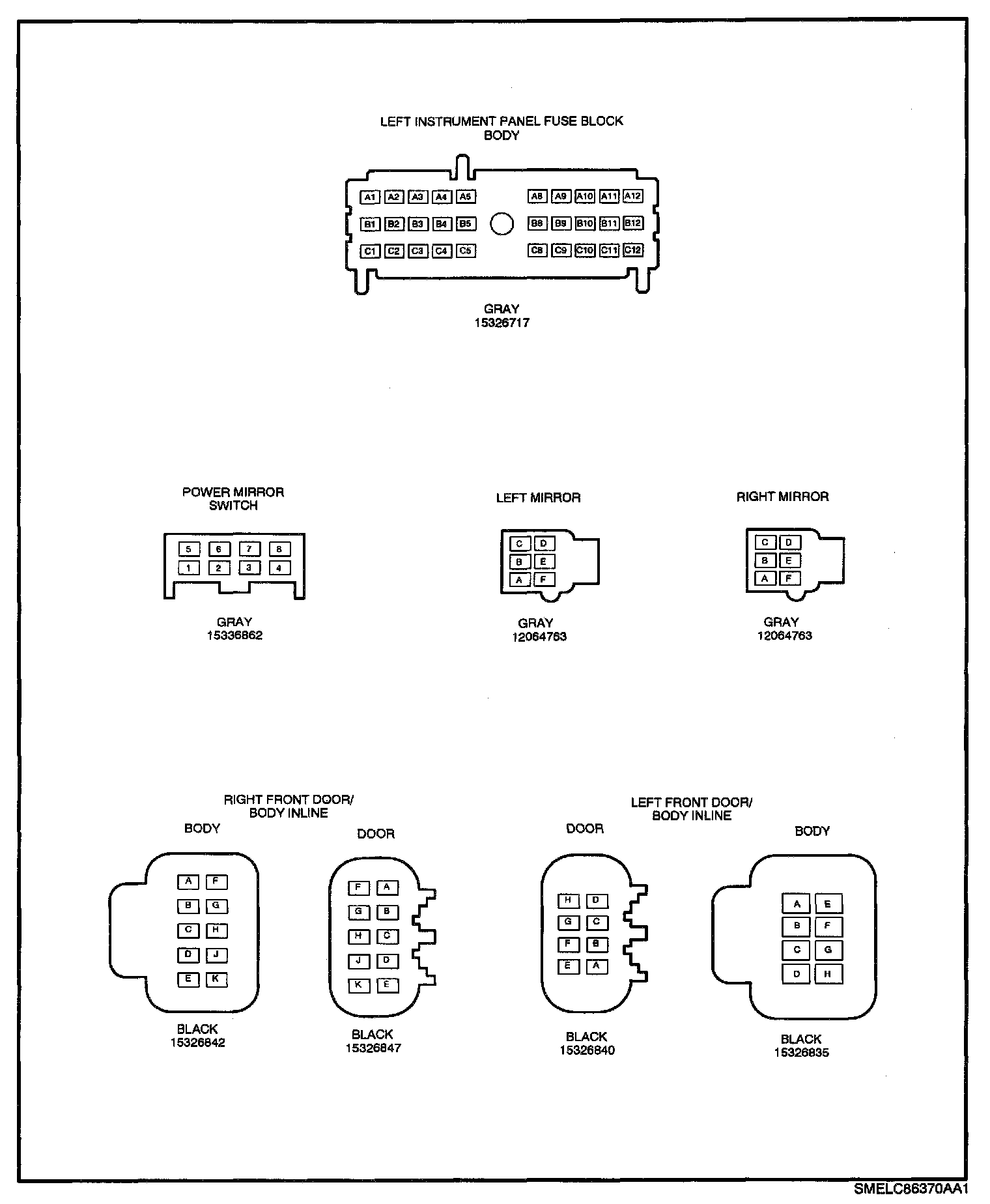 Power Mirror Harness Connector Face Views