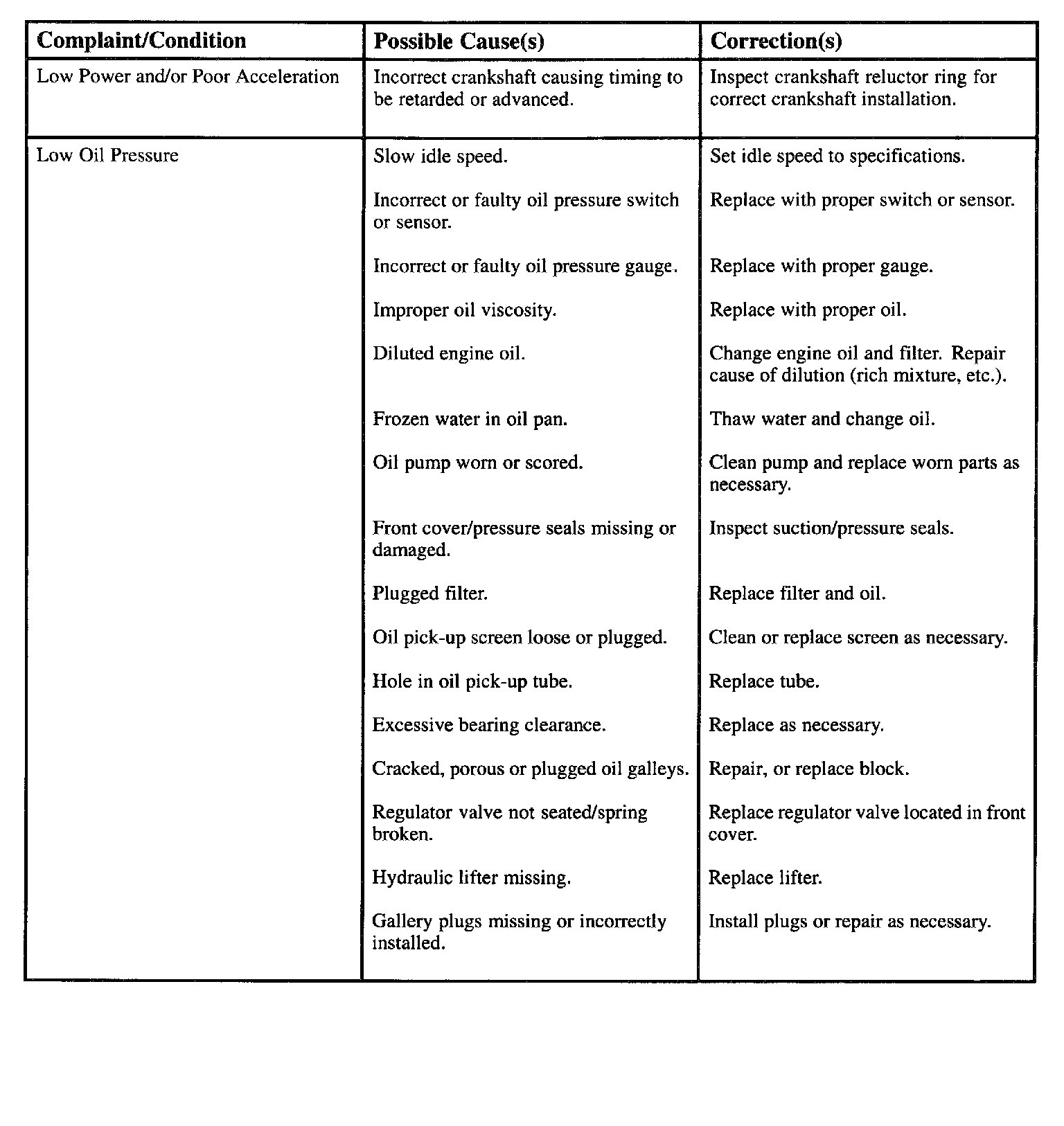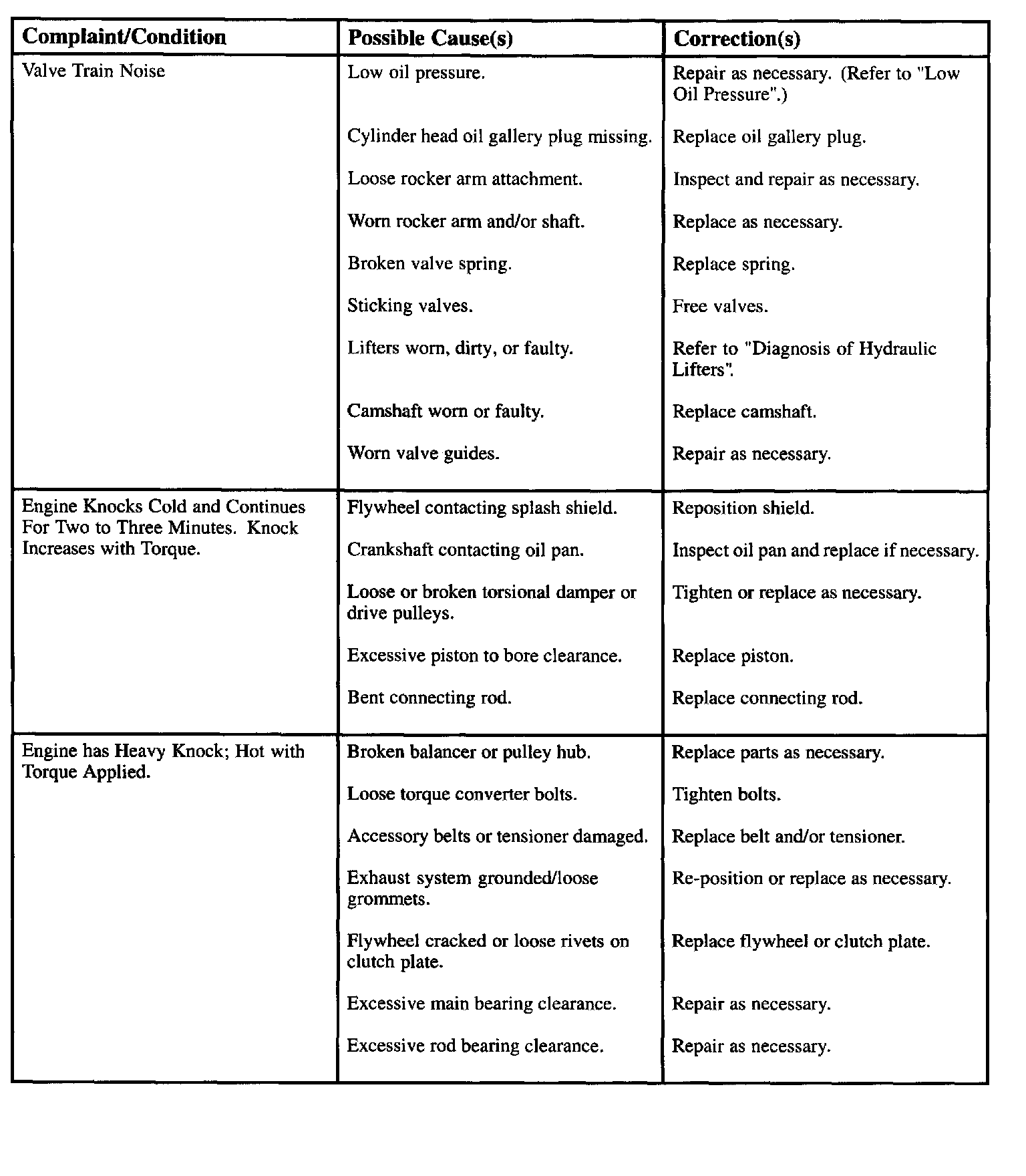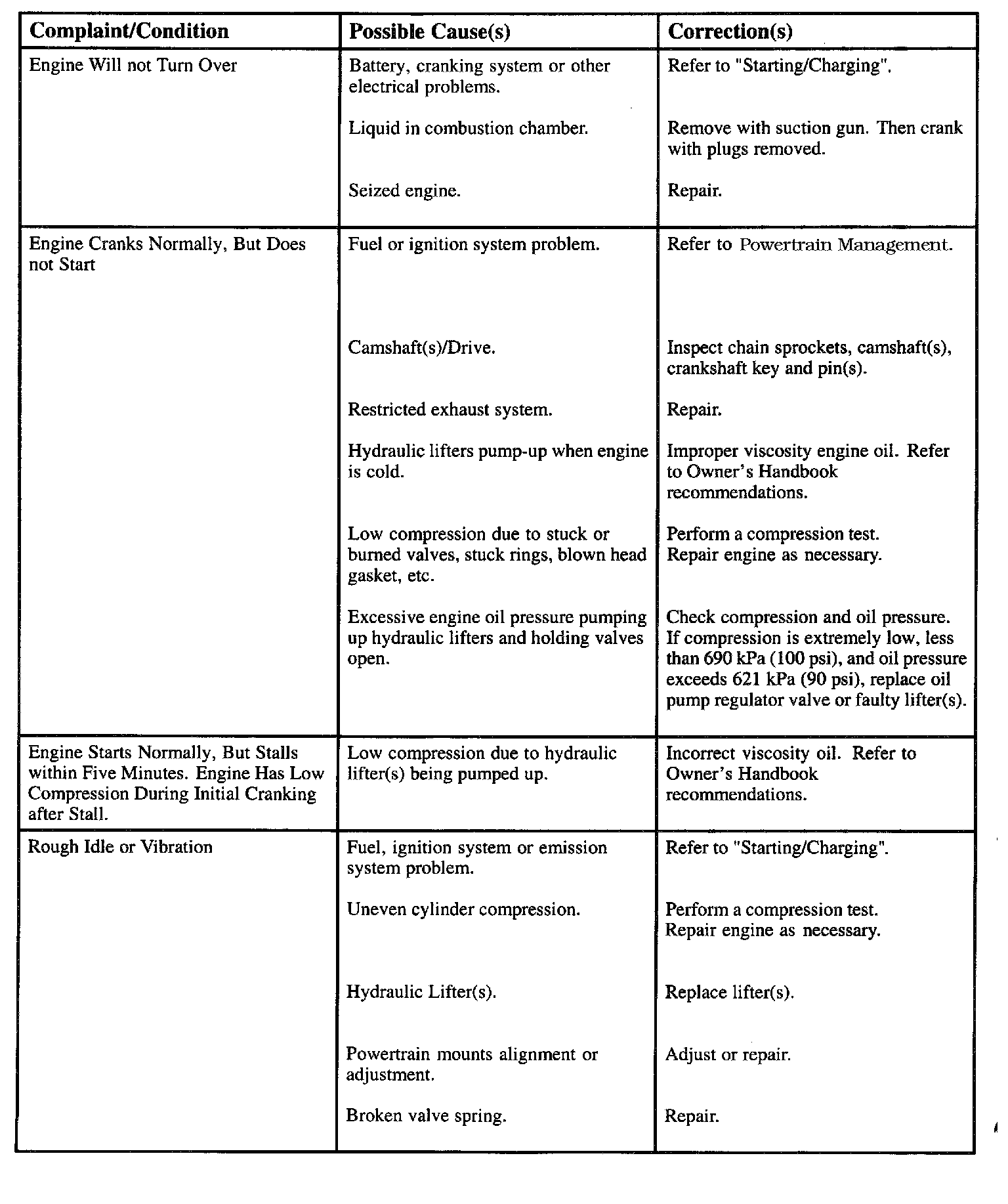 Engine Diagnostic Chart