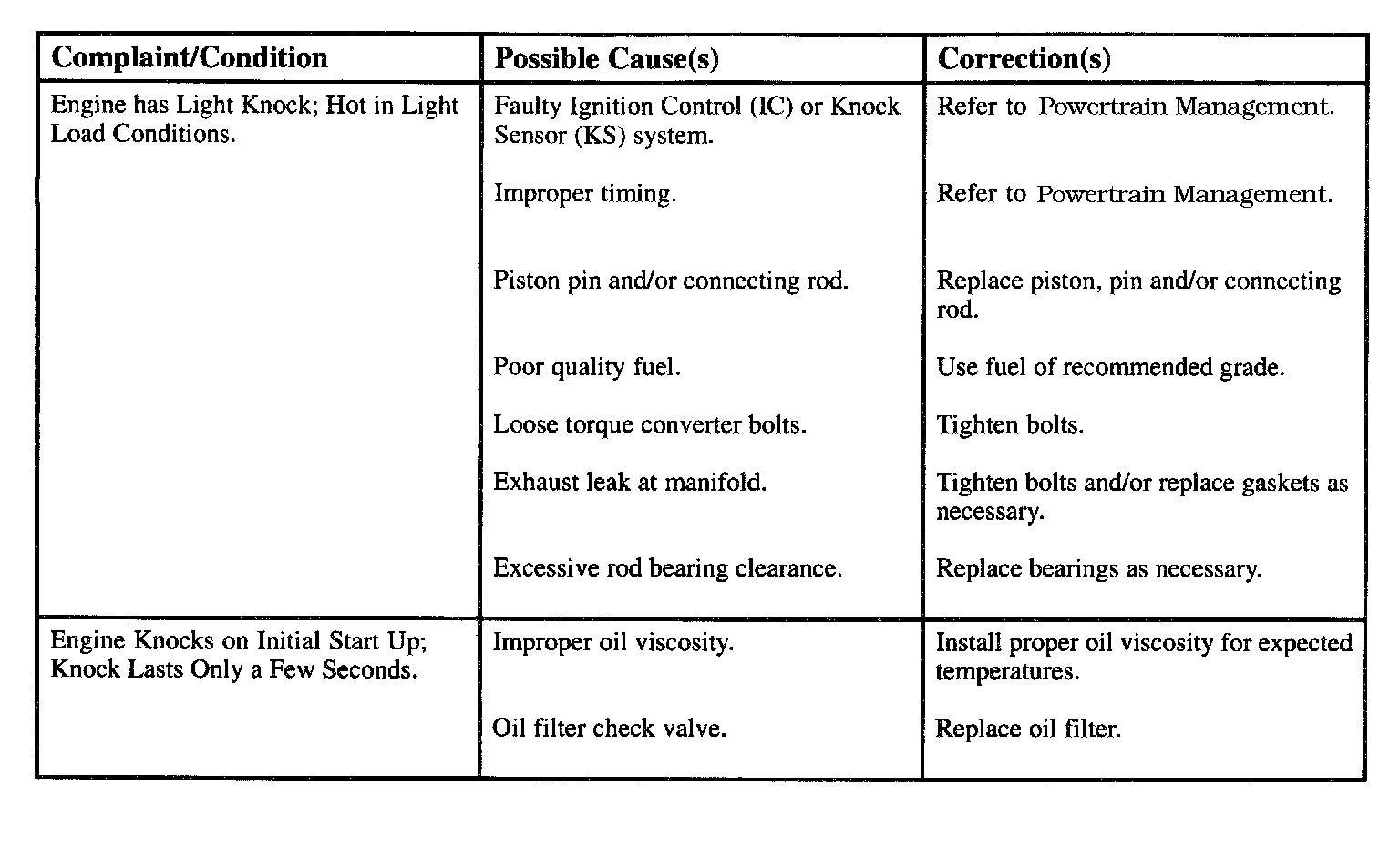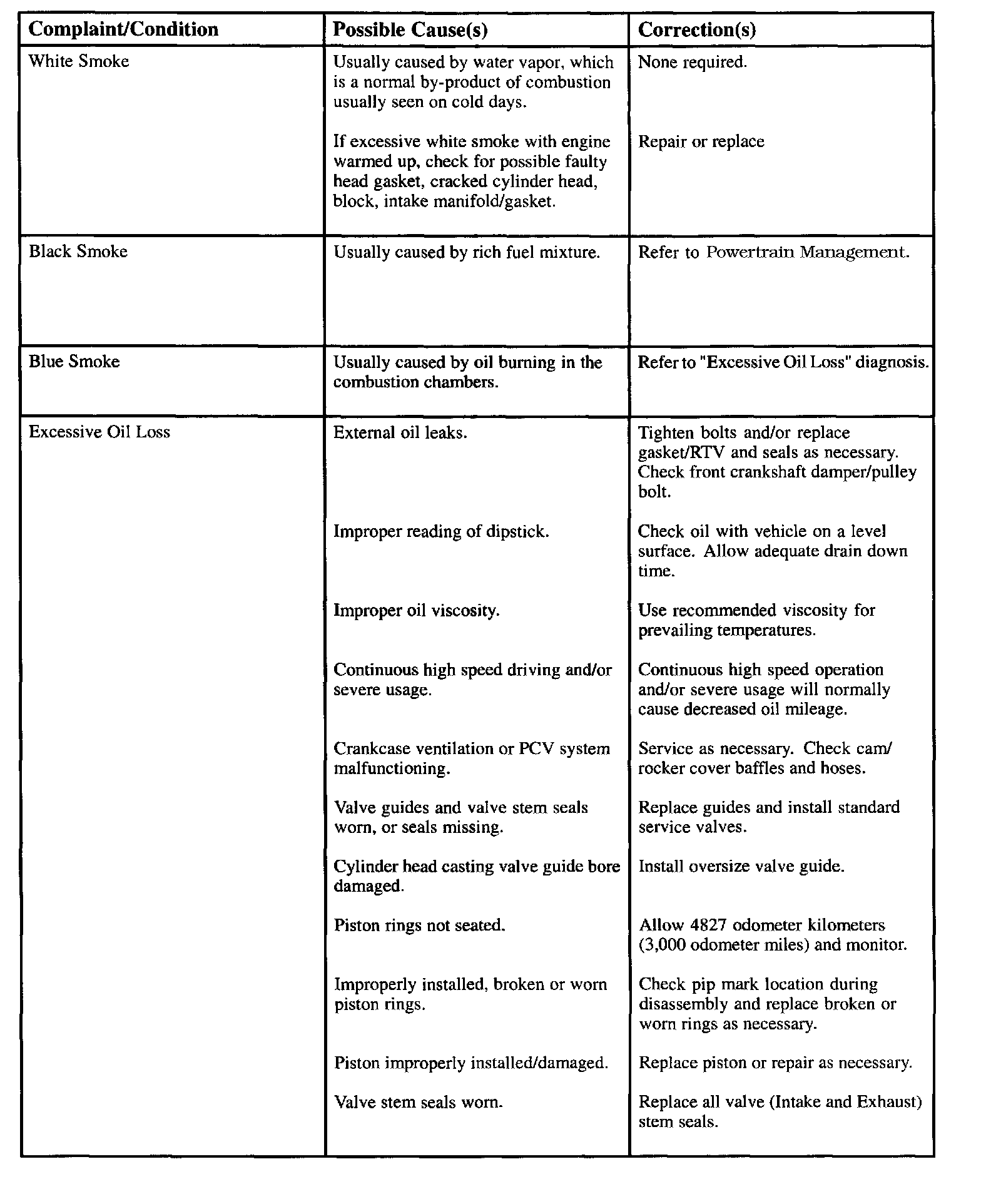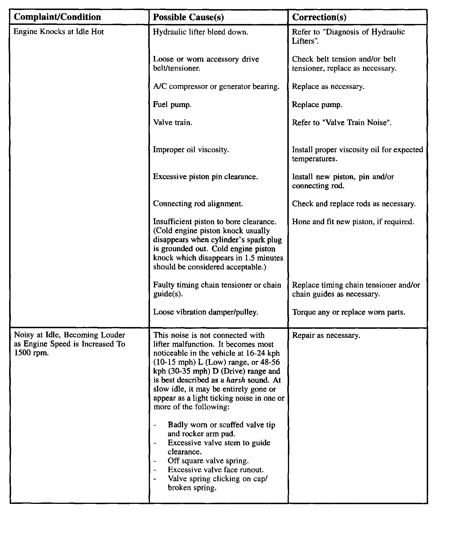 Engine Diagnostic Chart