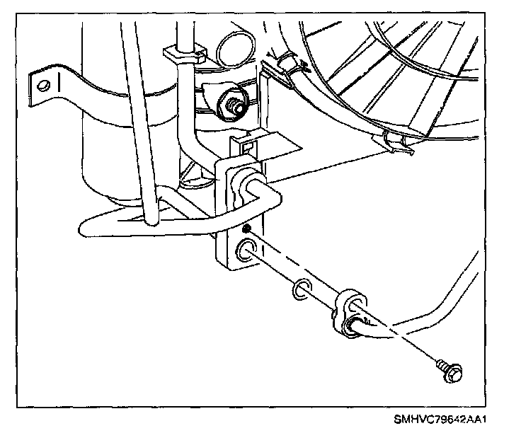 4. Remove discharge line-to-compressor bolt.