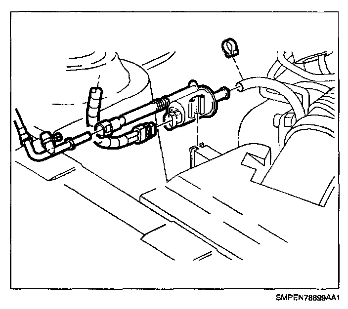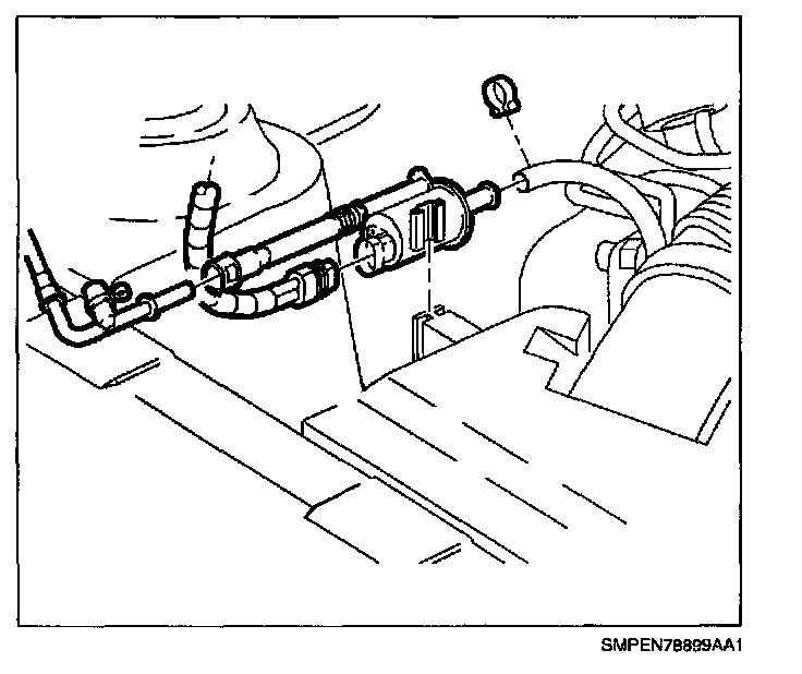2. Unsnap EVAP purge valve assembly and secure out of the way of air cleaner assembly.