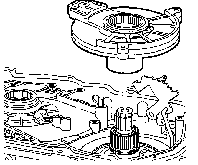 2. Install driven sprocket support and 2nd clutch assembly into transaxle case. When installed properly, driven sprocket support sits slightly below machined surface of transaxle case.