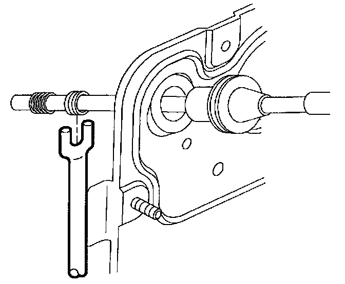 4. Install accelerator cable to throttle body support bracket assuring that locking tangs engage.