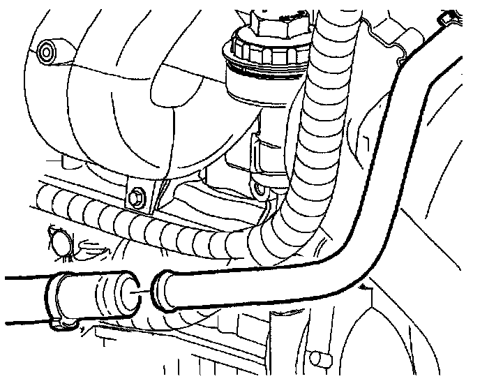 3. Remove clamp from A.I.R. hose behind the cooling fan.