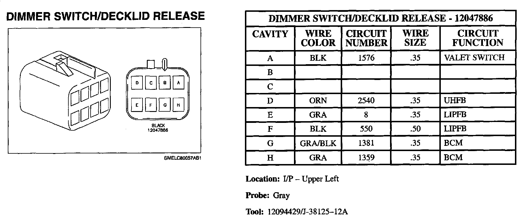 Dimmer Switch/Decklid Release: