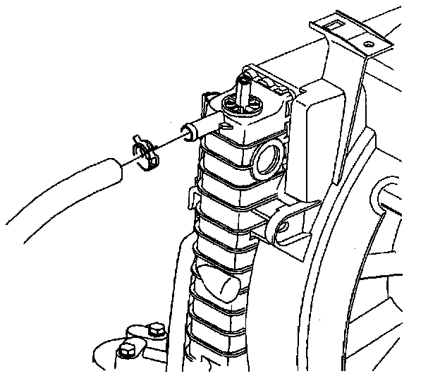 21. Remove radiator degas hose to radiator clamp and remove degas hose.