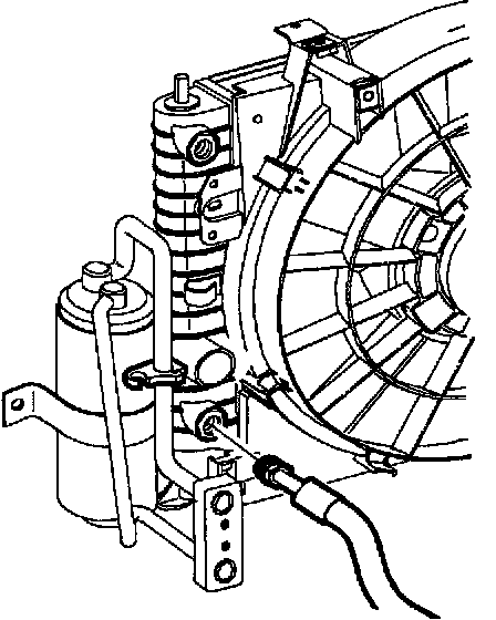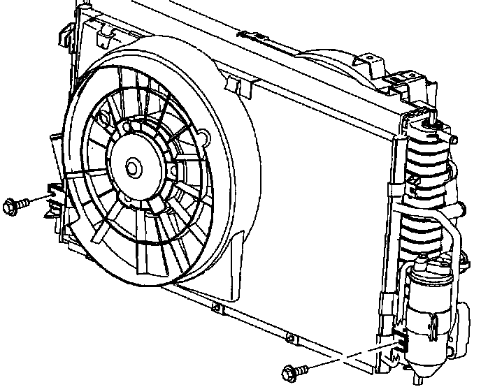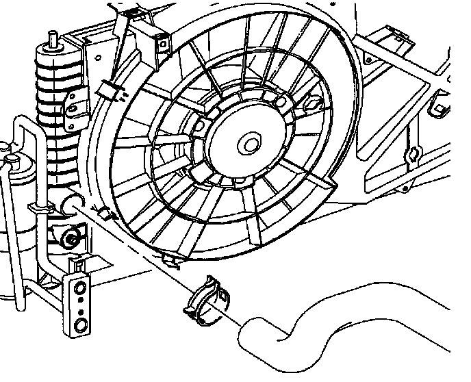 NOTICE: Verify that the pusher fan electrical harness is not between the fan shroud and the radiator.