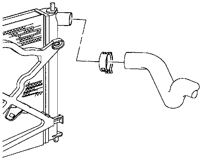 14. Remove upper radiator hose to radiator clamp and remove hose from radiator end tank.
